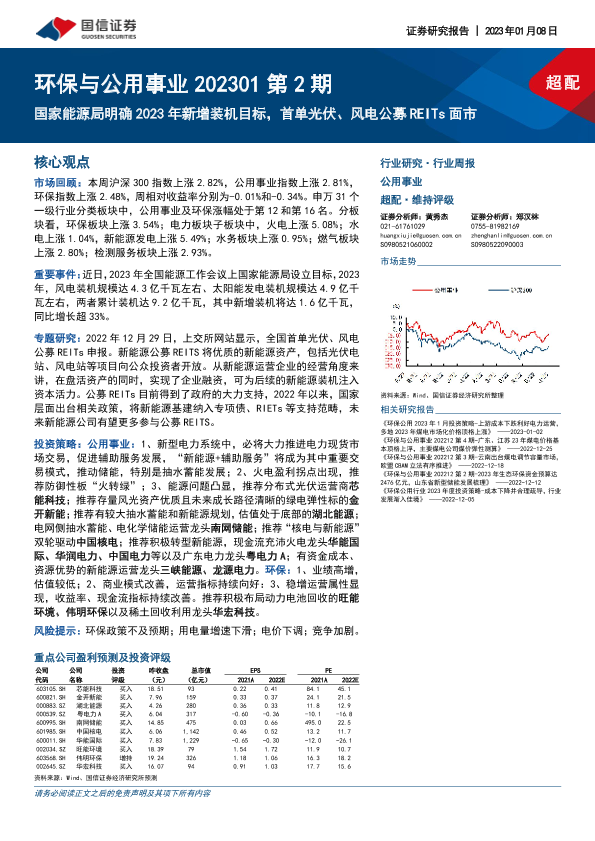 【国信证券】【20230108】环保与公用事业202301第2期:国家能源局明确2023年新增装机目标,首单光伏、风电公募REITs面市-29页