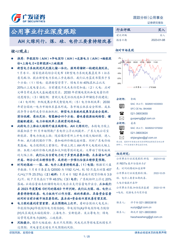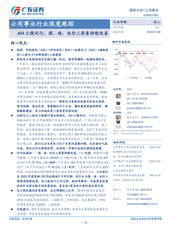 【广发证券】【20230108】公用事业行业深度跟踪:AH火绿同行,煤、硅、电价三要素持续改善-25页