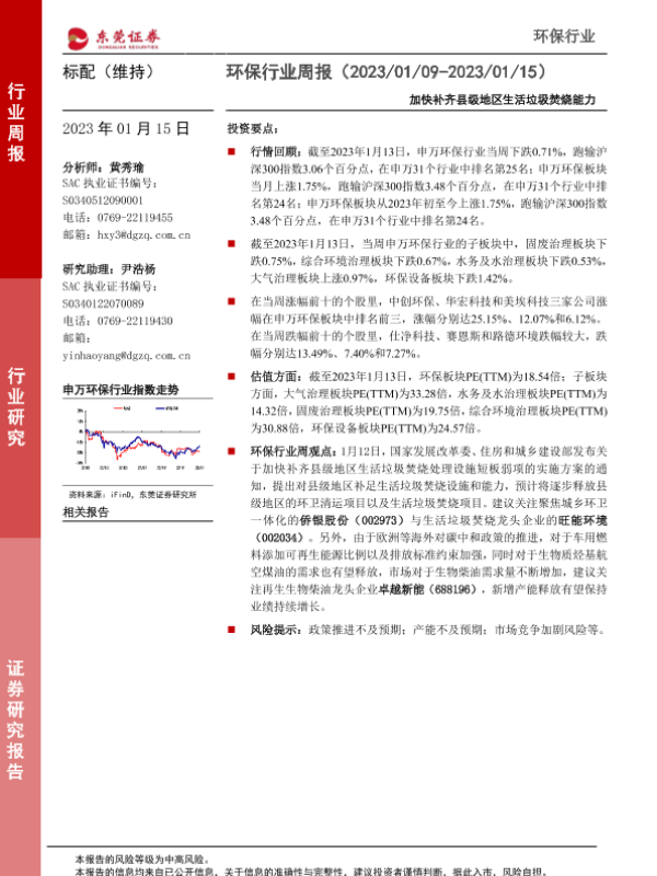 【东莞证券】【20230115】加快补齐县级地区生活垃圾焚烧能力-12页
