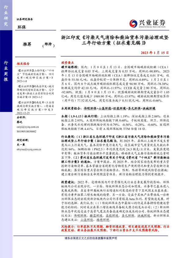 【兴业证券】【20230115】浙江印发《污染天气消除和柴油货车污染治理攻坚三年行动方案(征求意见稿)》-11页