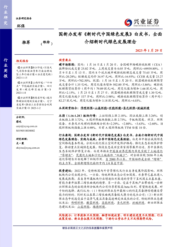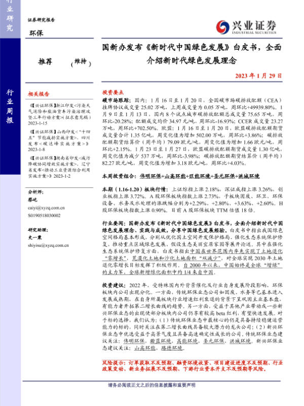 【兴业证券】【20230129】环保行业周报:国新办发布《新时代中国绿色发展》白皮书,全面介绍新时代绿色发展理念-11页