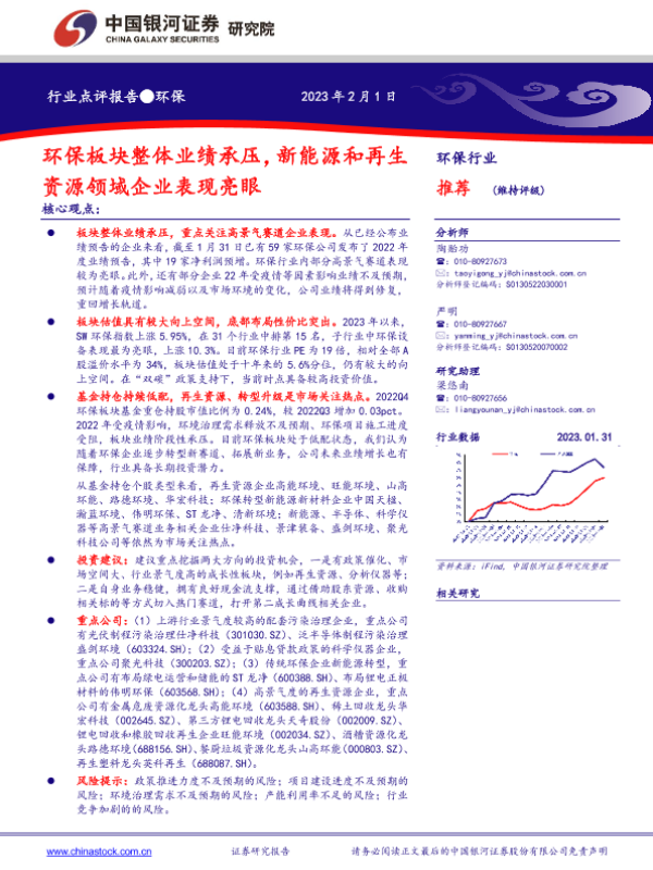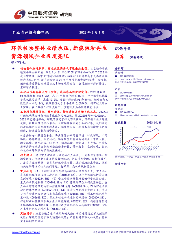 【银河证券】【20230201】环保行业点评报告:环保板块整体业绩承压,新能源和再生资源领域企业表现亮眼-11页