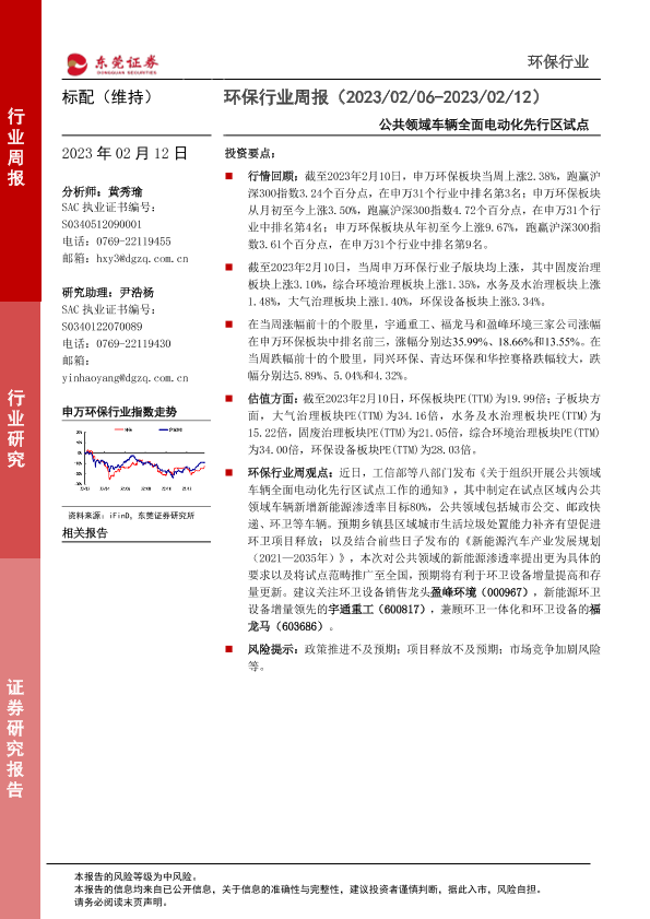 【东莞证券】【20230212】环保行业周报:公共领域车辆全面电动化先行区试点-12页