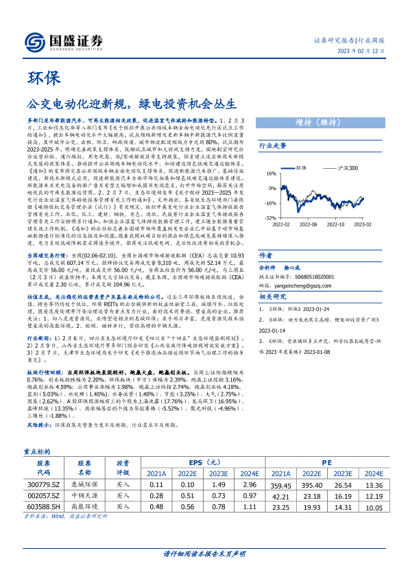 【国盛证券】【20230212】环保行业周报:公交电动化迎新规,绿电投资机会丛生-10页