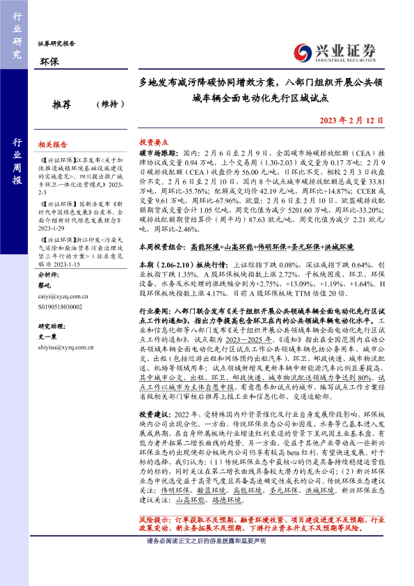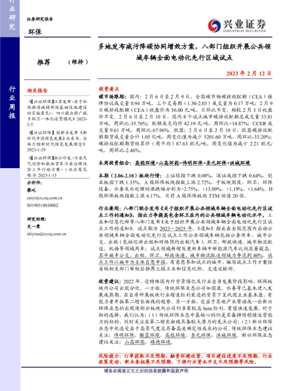 【兴业证券】【20230212】多地发布减污降碳协同增效方案,八部门组织开展公共领域车辆全面电动化先行区域试点-10页