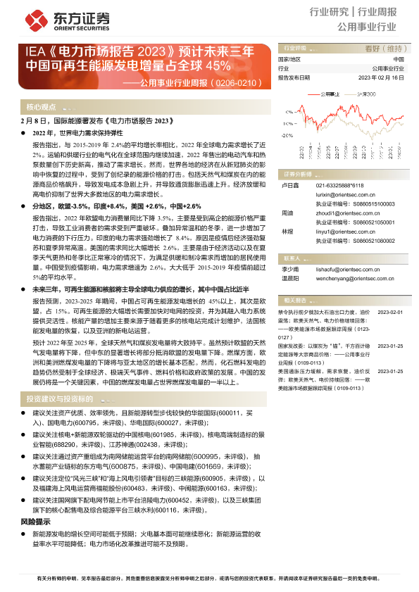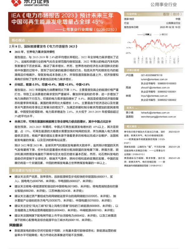 【东方证券】【20230216】IEA《电力市场报告2023》预计未来三年中国可再生能源发电增量占全球45%-14页