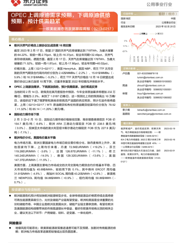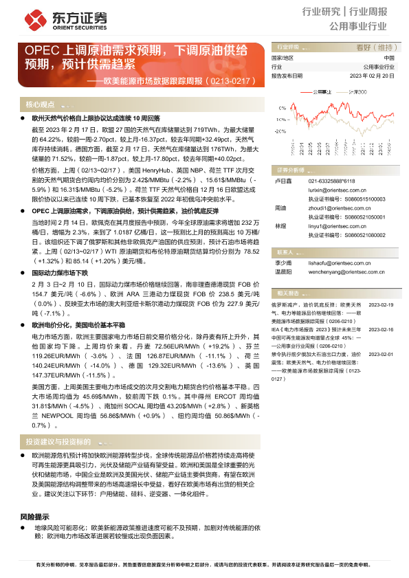 【东方证券】【20230220】欧美能源市场数据跟踪周报-14页