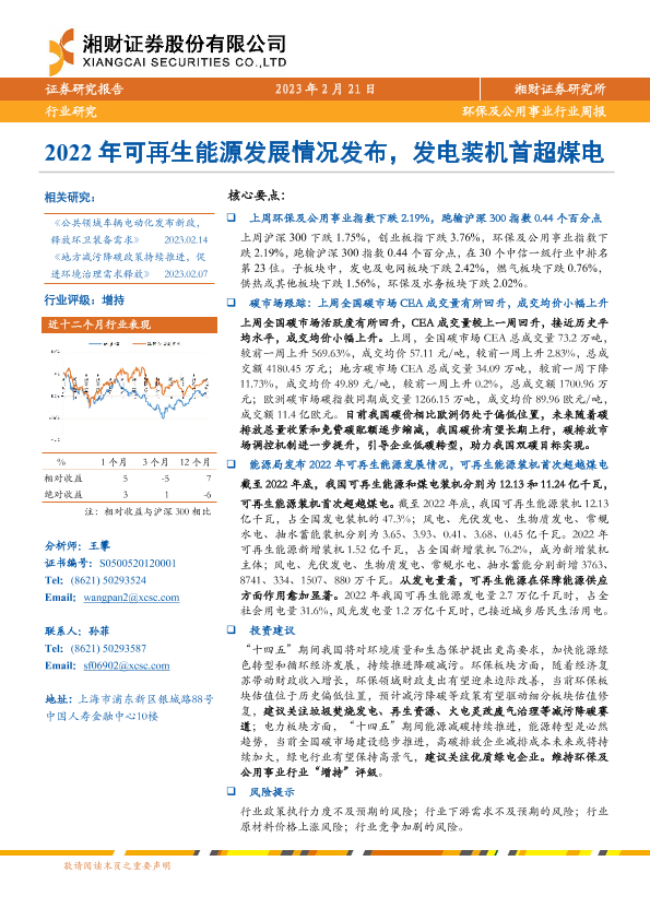 【湘财证券】【20230221】2022年可再生能源发展情况发布,发电装机首超煤电-15页