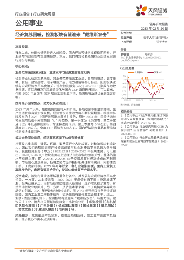 【天风证券】【20230220】公用事业行业研究周报:经济复苏回暖,检测板块有望迎来‘戴维斯双击’-11页