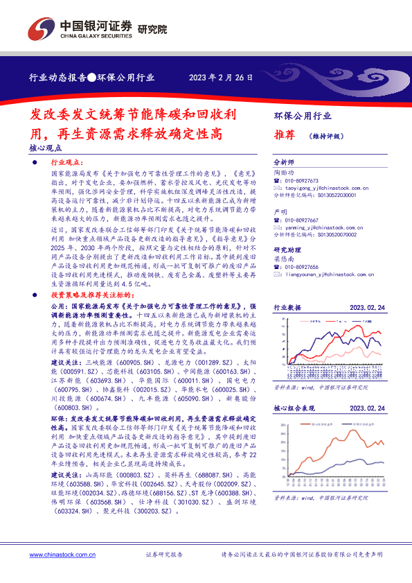 【银河证券】【20230226】环保公用行业行业动态报告:发改委发文统筹节能降碳和回收利用,再生资源需求释放确定性高-14页