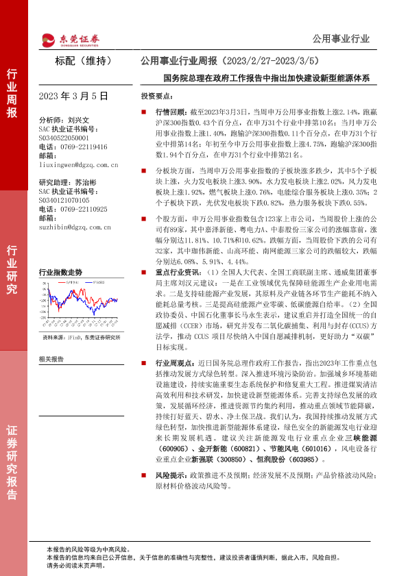 【东莞证券】【20230305】公用事业行业周报:国务院总理在政府工作报告中指出加快建设新型能源体系-13页