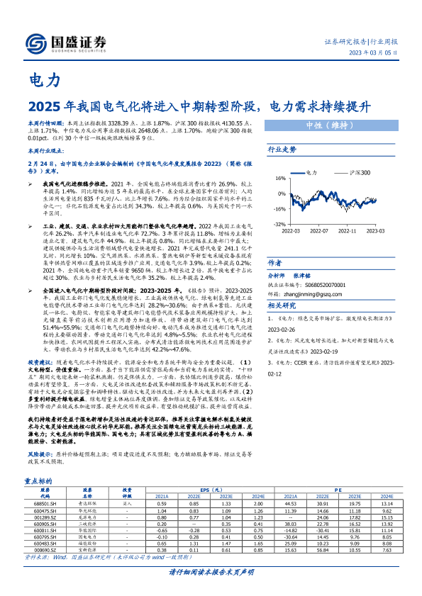 【国盛证券】【20230305】电力行业周报:2025年我国电气化将进入中期转型阶段,电力需求持续提升-13页