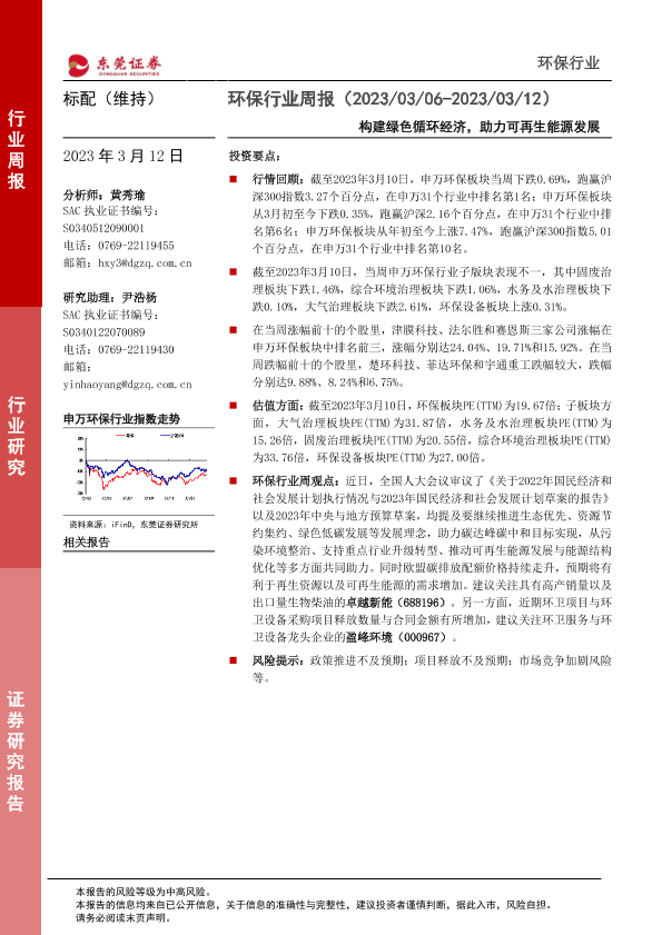 【东莞证券】【20230312】环保行业周报:构建绿色循环经济,助力可再生能源发展-12页