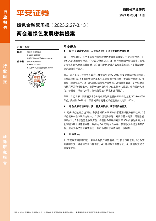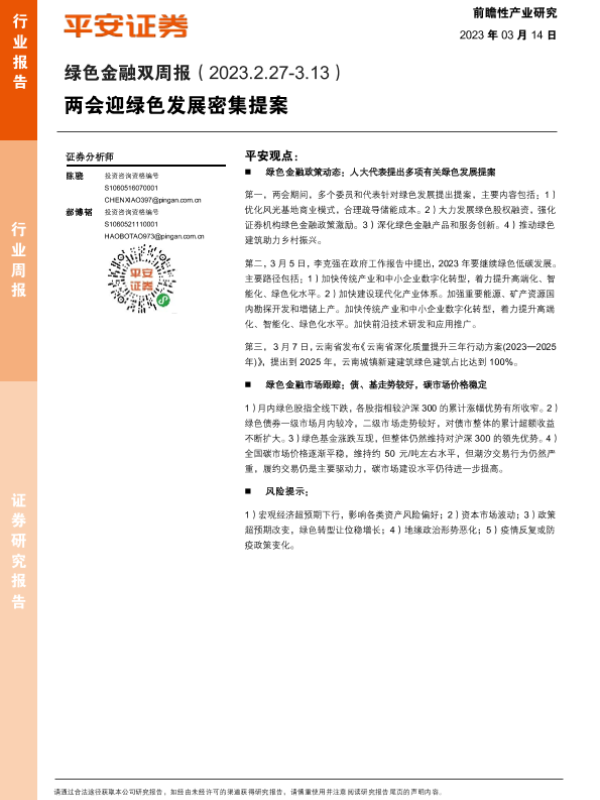 【平安证券】【20230314】绿色金融双周报:两会迎绿色发展密集提案-10页