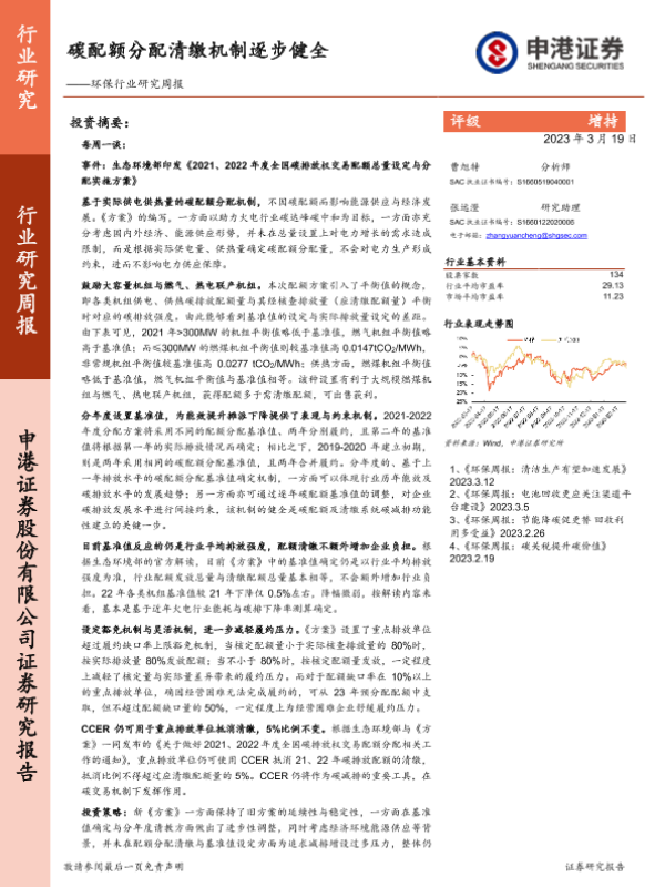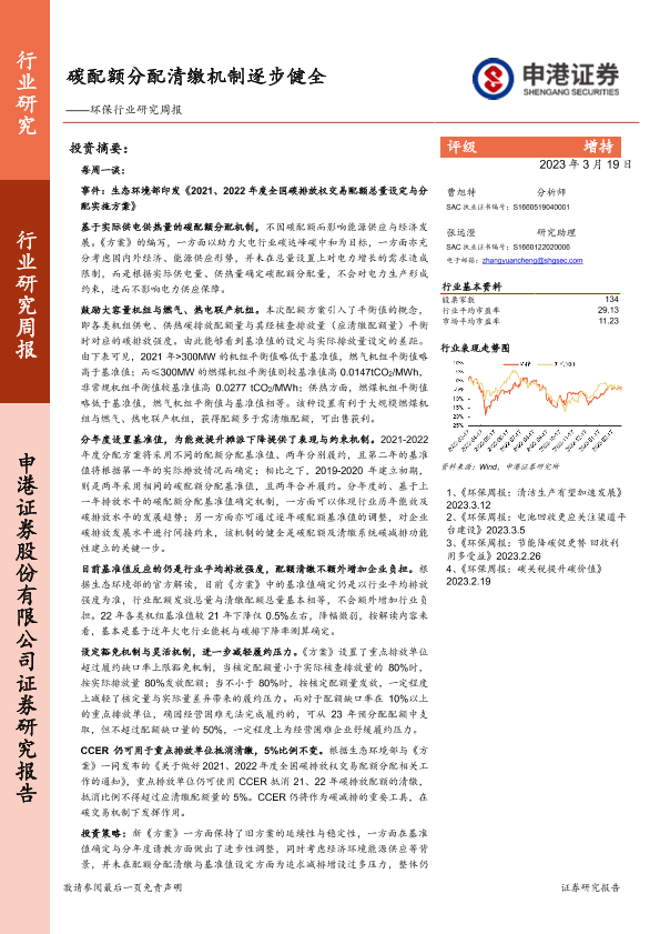 【申港证券】【20230319】环保行业研究周报:碳配额分配清缴机制逐步健全-17页