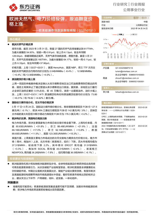 【东方证券】【20230404】欧美能源市场数据跟踪周报:欧洲天然气、电力价格反弹,原油期货价格上涨-13页