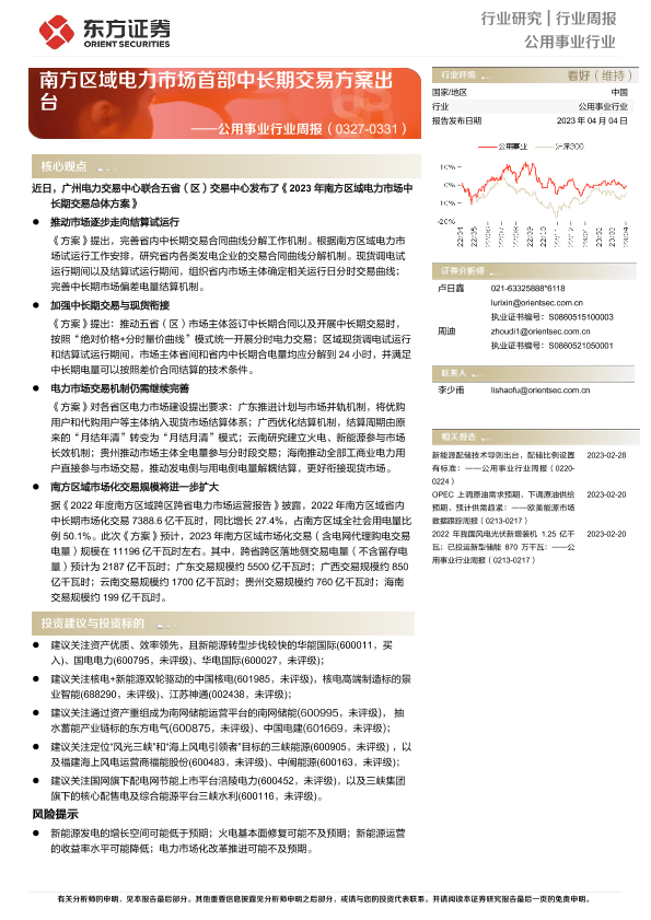 【东方证券】【20230404】南方区域电力市场首部中长期交易方案出台-15页