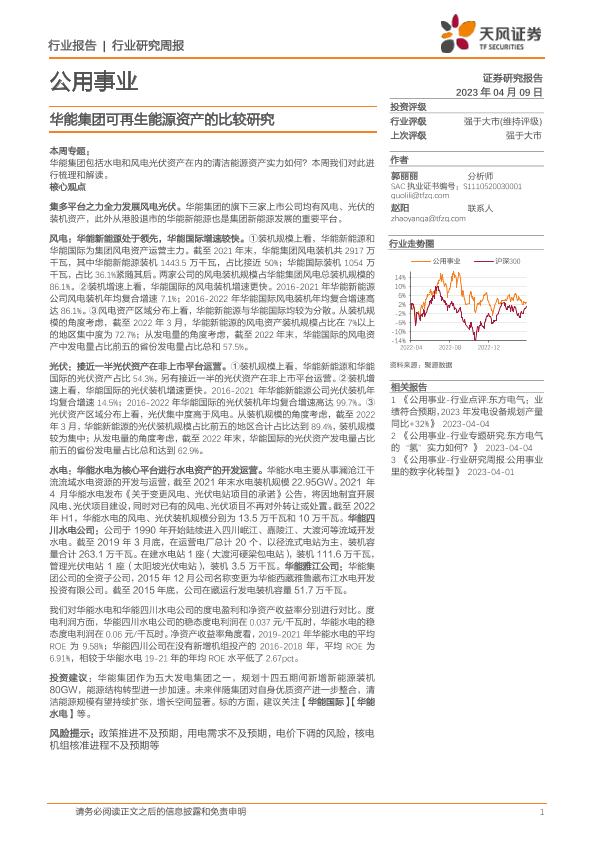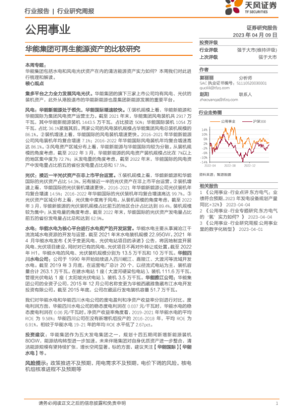 【天风证券】【20230409】公用事业行业研究周报:华能集团可再生能源资产的比较研究-17页