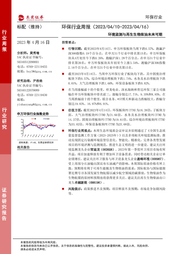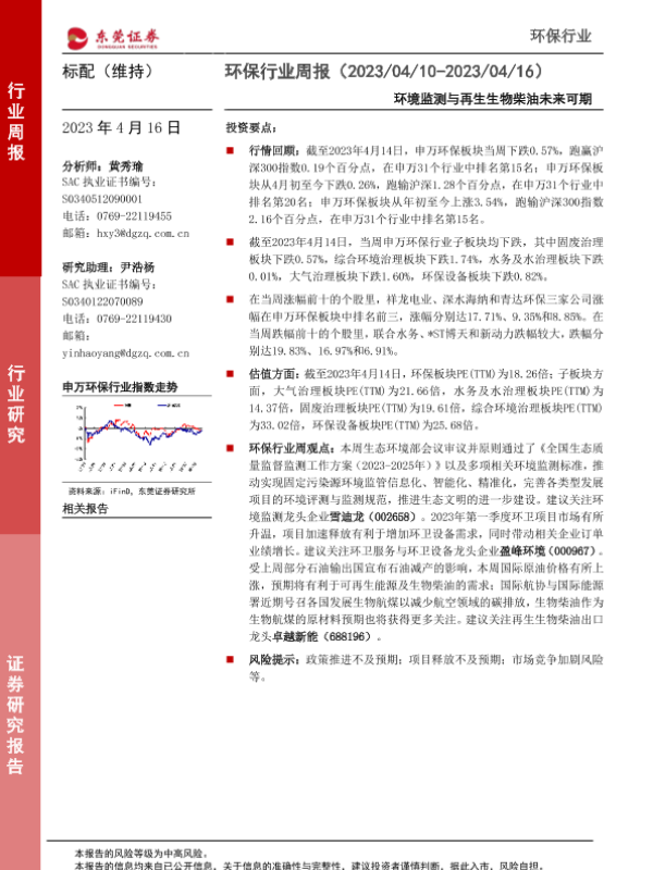 【东莞证券】【20230416】环保行业周报:环境监测与再生生物柴油未来可期-12页