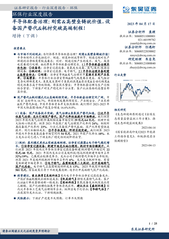 半导体 环保行业 耗材 设备国产替代 高端制程
