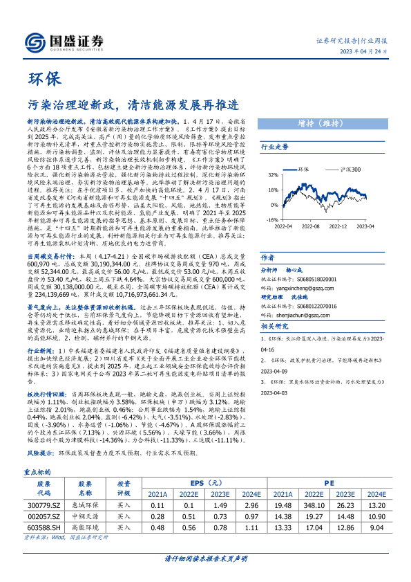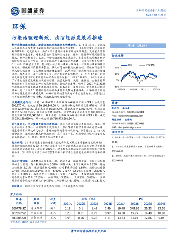 【国盛证券】【20230424】环保行业周报:污染治理迎新政,清洁能源发展再推进-11页