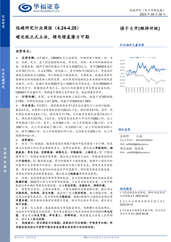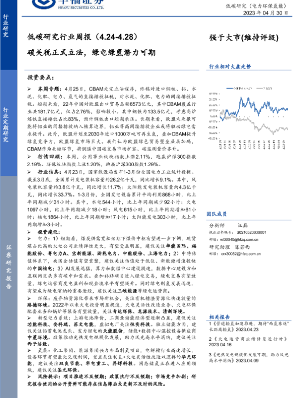 【华福证券】【20230430】低碳研究行业周报:碳关税正式立法,绿电绿氢潜力可期-17页