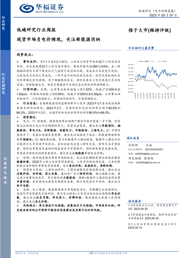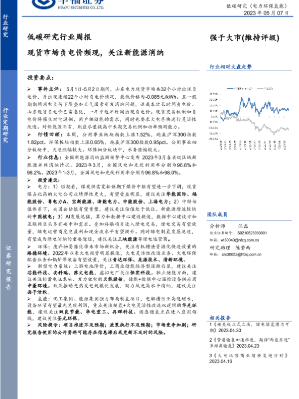 【华福证券】【20230507】低碳研究行业周报:现货市场负电价频现,关注新能源消纳-12页