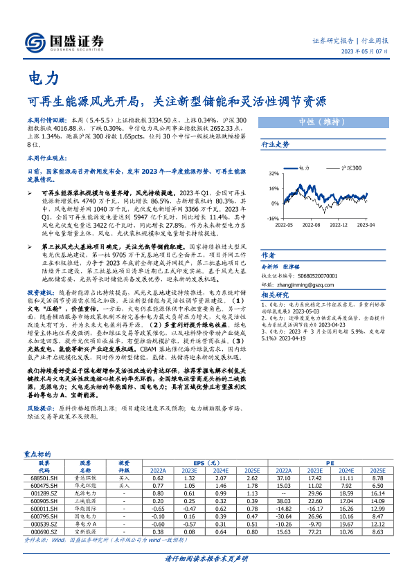 【国盛证券】【20230507】电力行业周报:可再生能源风光开局,关注新型储能和灵活性调节资源-12页