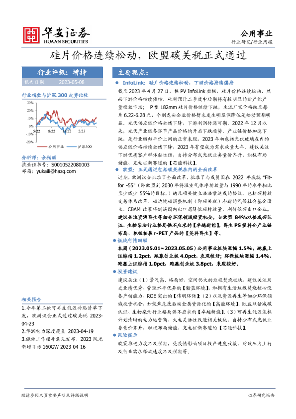 【华安证券】【20230508】公用事业行业周报:硅片价格连续松动,欧盟碳关税正式通过-19页