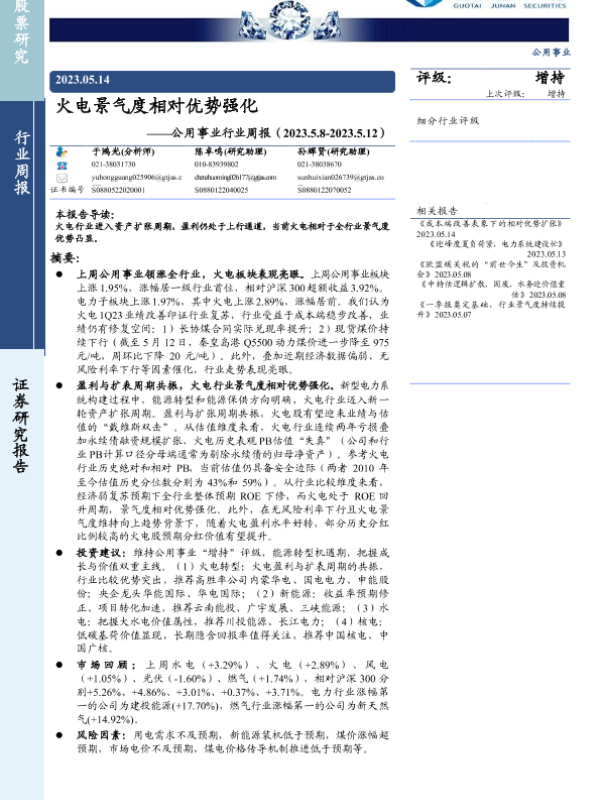 【国泰君安证券】【20230514】火电景气度相对优势强化-17页