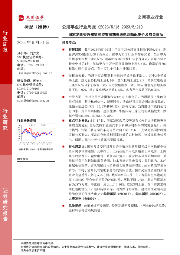 【东莞证券】【20230521】公用事业行业周报:国家发改委通知第三监管周期省级电网输配电价及有关事项-12页