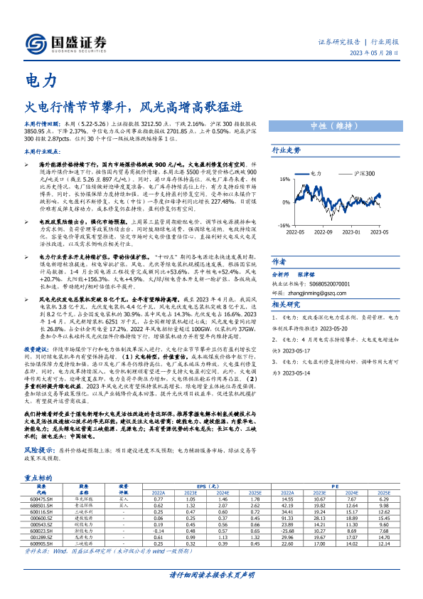 【国盛证券】【20230528】电力行业周报:火电行情节节攀升,风光高增高歌猛进-14页