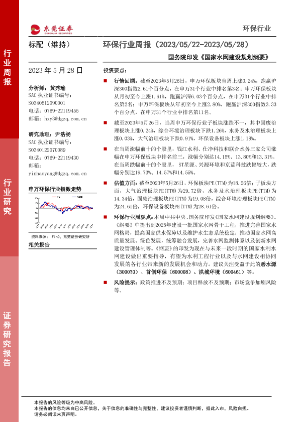 【东莞证券】【20230528】环保行业周报:国务院印发《国家水网建设规划纲要》-12页