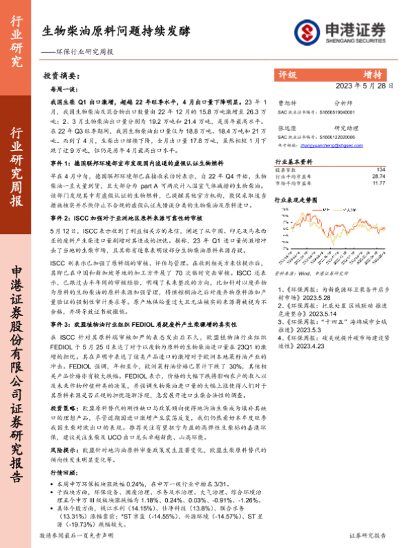 【申港证券】【20230528】环保行业研究周报:生物柴油原料问题持续发酵-11页