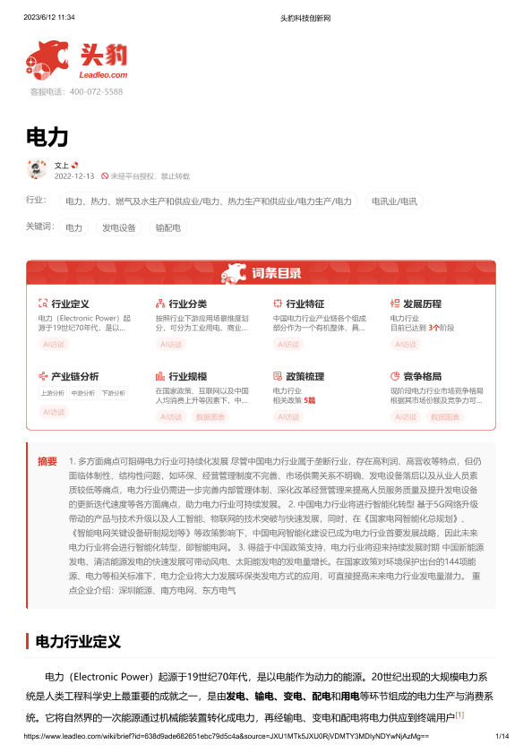 头豹研究院 电力热力燃气水生产 2023年 PDF 1.48 MB