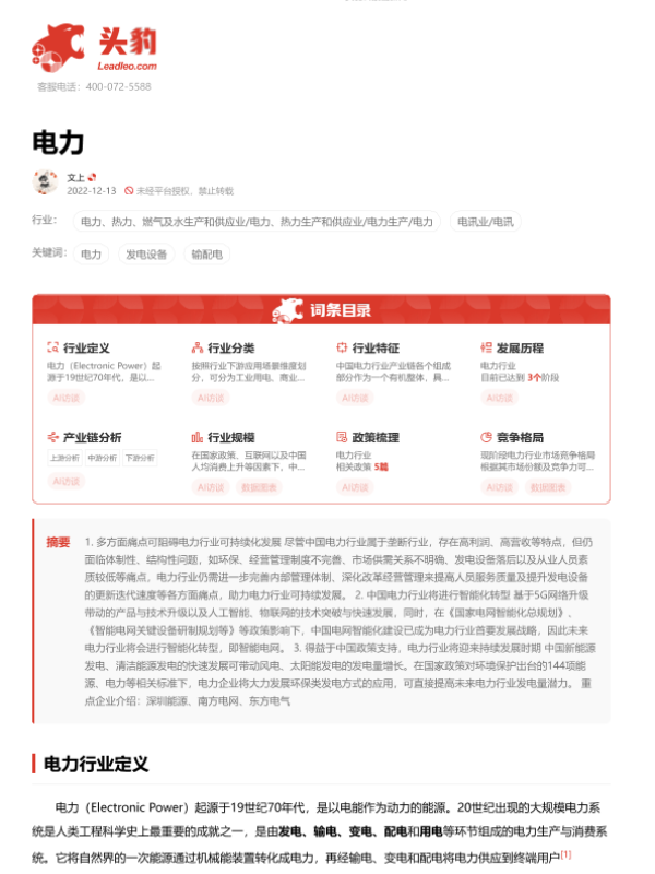产业链分析 可持续发展 政策支持 智能化转型 电力行业