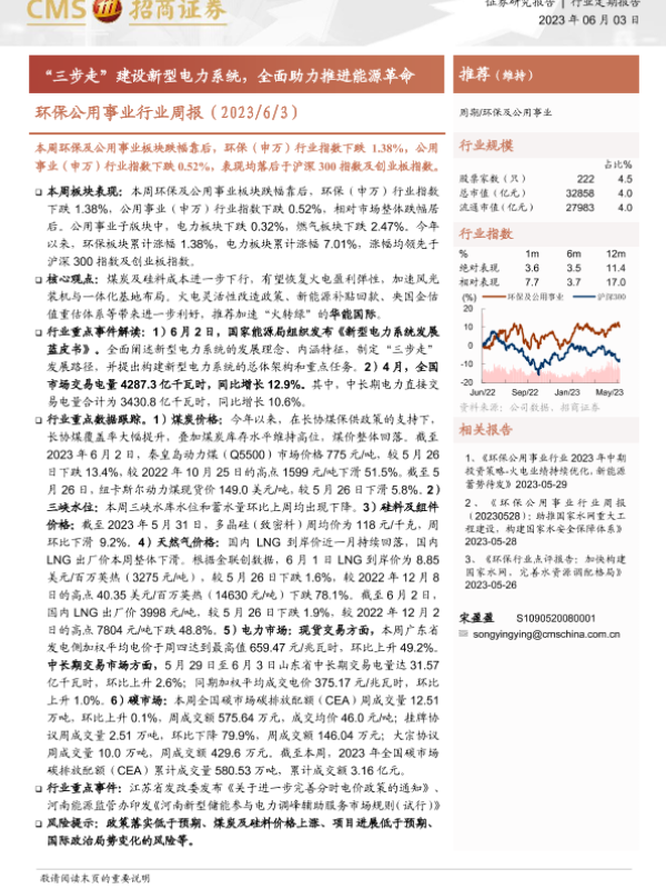 【海通证券】【20230603】环保公用事业行业周报:“三步走”建设新型电力系统,全面助力推进能源革命-17页