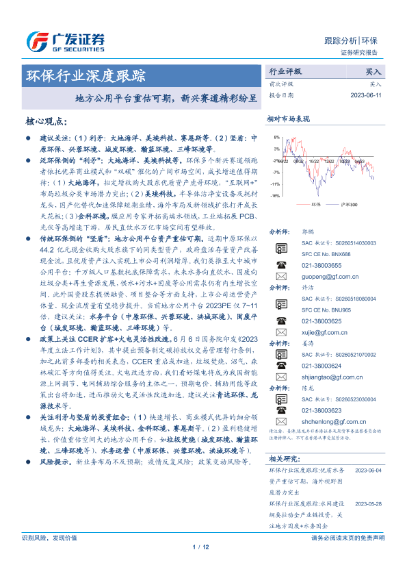 【广发证券】【20230611】环保行业深度跟踪:地方公用平台重估可期,新兴赛道精彩纷呈-12页