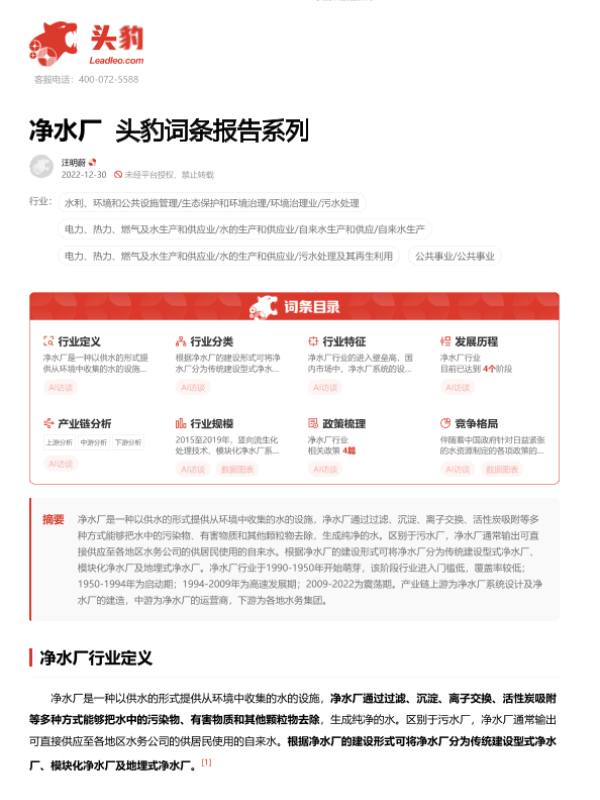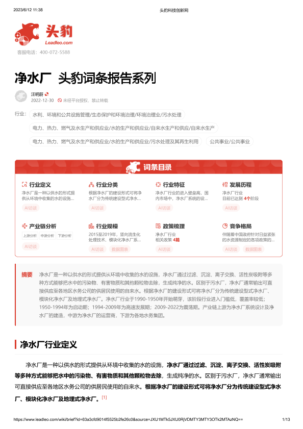【头豹研究院】【20230612】净水厂 头豹词条报告系列-13页