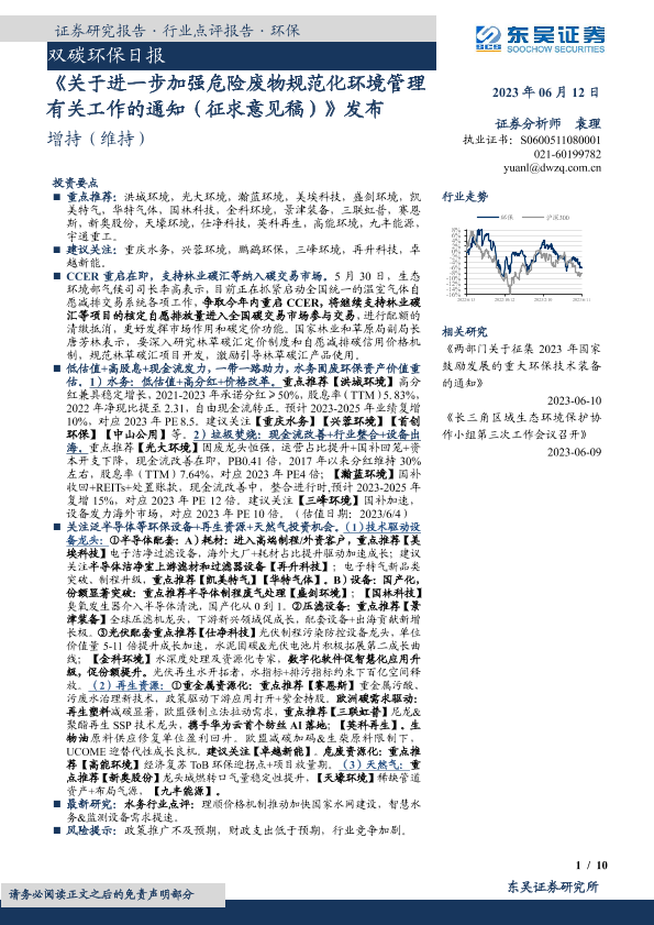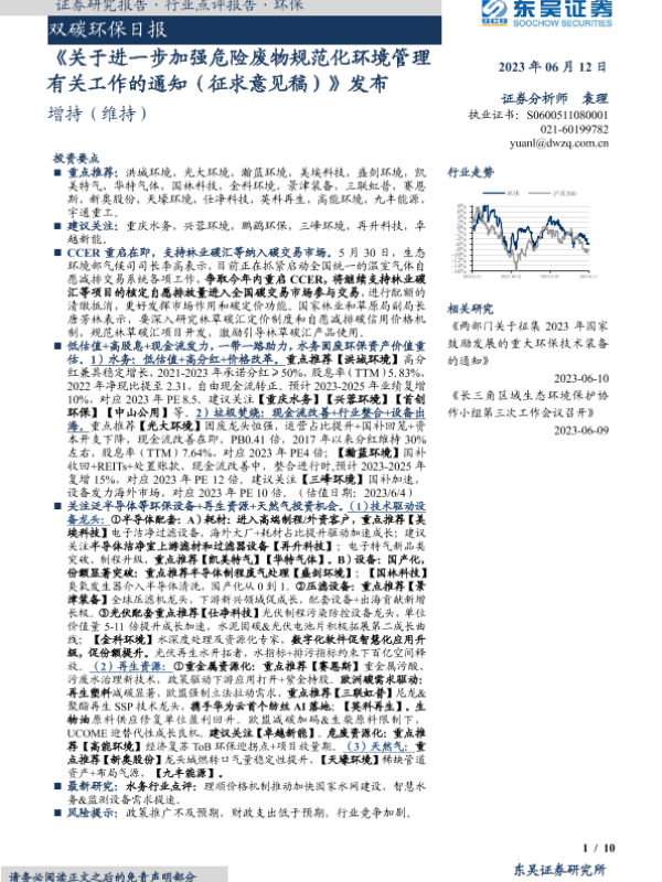 【东吴证券】【20230612】关于进一步加强危险废物规范化环境管理有关工作的通知(征求意见稿)发布-10页