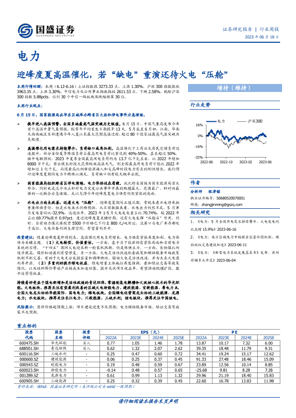 【国盛证券】【20230618】电力行业周报:迎峰度夏高温催化,若“缺电”重演还待火电“压舱”-15页
