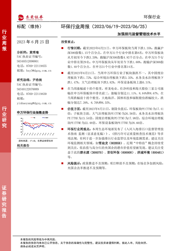 【东莞证券】【20230625】环保行业周报:加强排污监督管理技术水平-12页