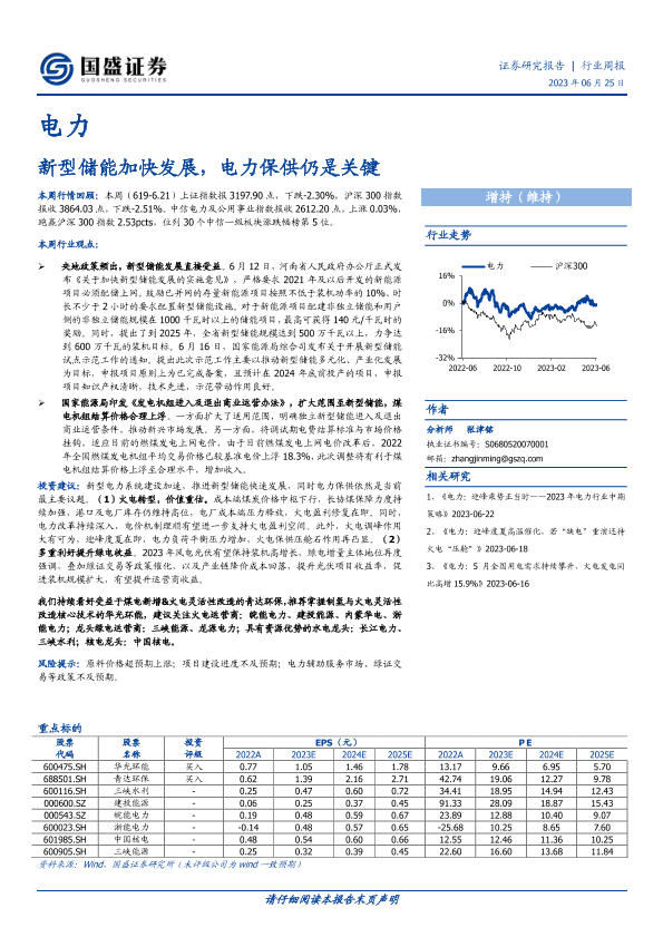 【国盛证券】【20230625】电力行业周报:新型储能加快发展,电力保供仍是关键-13页