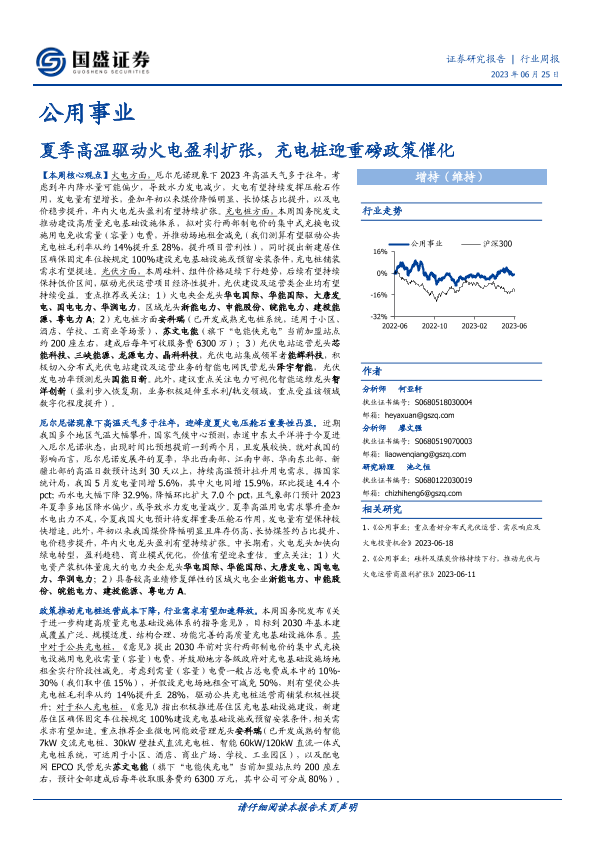 【国盛证券】【20230625】公用事业行业周报:夏季高温驱动火电盈利扩张,充电桩迎重磅政策催化-11页