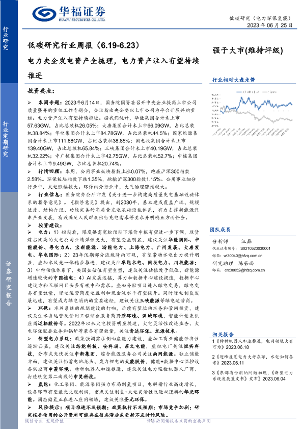 【华福证券】【20230625】低碳研究行业周报:电力央企发电资产全梳理,电力资产注入有望持续推进-18页