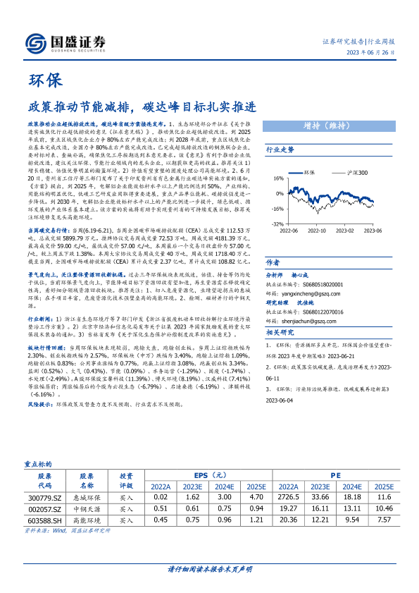 【国盛证券】【20230626】环保行业周报:政策推动节能减排,碳达峰目标扎实推进-12页