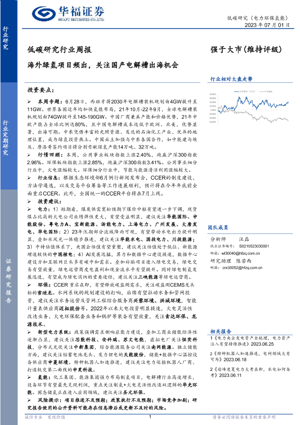 【华福证券】【20230701】低碳研究行业周报:海外绿氢项目频出,关注国产电解槽出海机会-17页