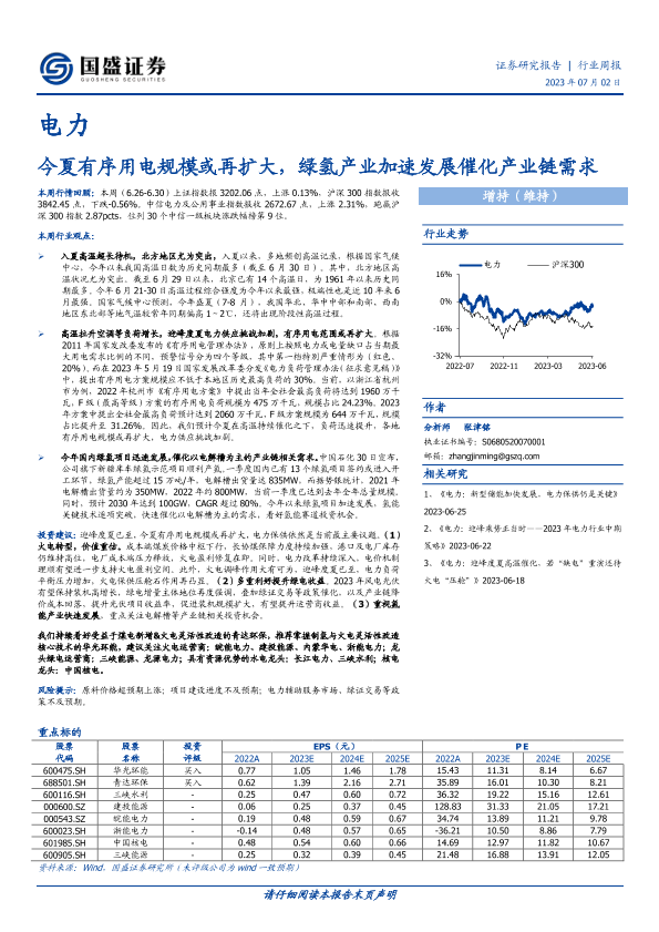 【国盛证券】【20230702】今夏有序用电规模或再扩大,绿氢产业加速发展催化产业链需求-14页