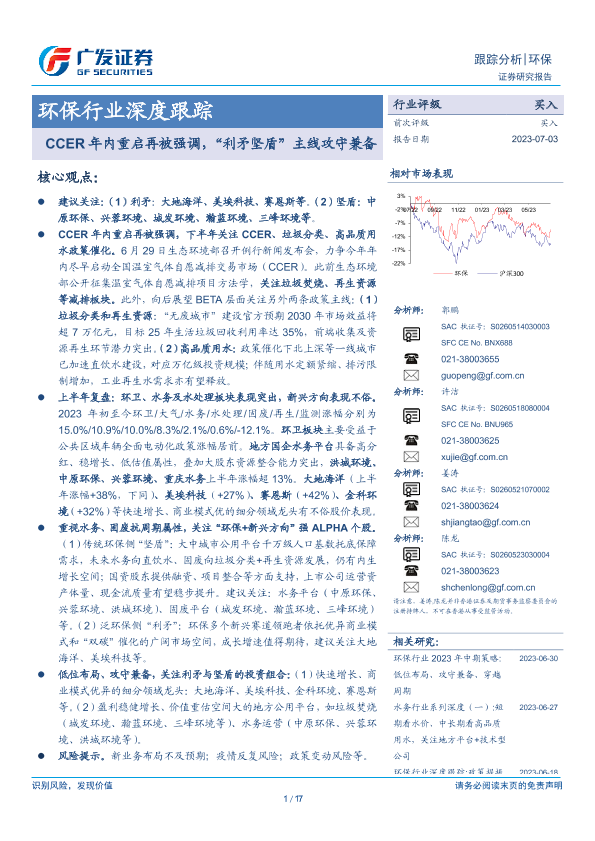 【广发证券】【20230703】环保行业深度跟踪:CCER年内重启再被强调,“利矛坚盾”主线攻守兼备-17页
