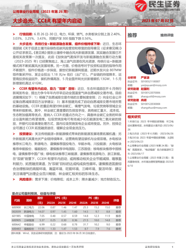 【民生证券】【20230702】大步追光,CCER有望年内启动-25页